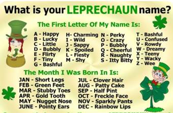 | Mar 17 | Tues | St. Patrick's Day |