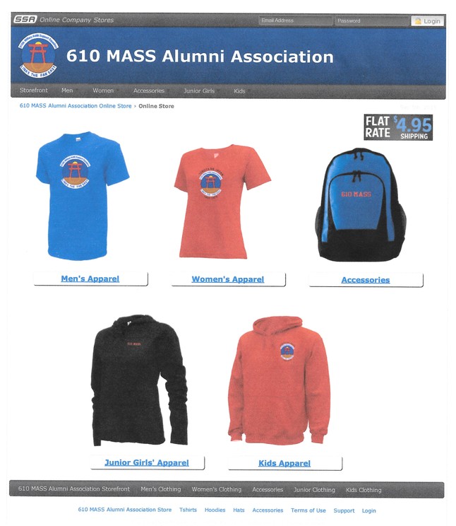 Here you'll be able to purchase items to wear and accessories you can use. Whenever you purchase anything 12% of the purchase price will go directly to the 610 MASS Alumni Association and in doing so you'll be helping our organization support itself.