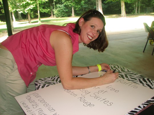 Deanne drawing our Raffle sign