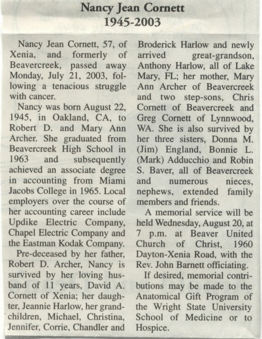 Nancy Archer (Cornett) - Class Of 1963