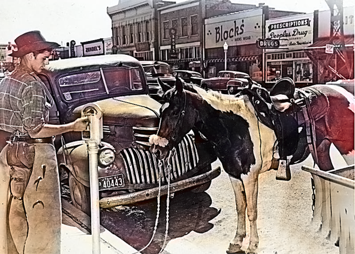 Man "Parking" his horse on Brigham City Main Street ↓