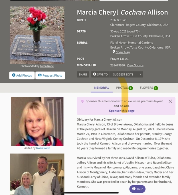 Linda Truelove Swinehart has left an In Memory comment for Marcia Thompson Thompson/ALLISON.