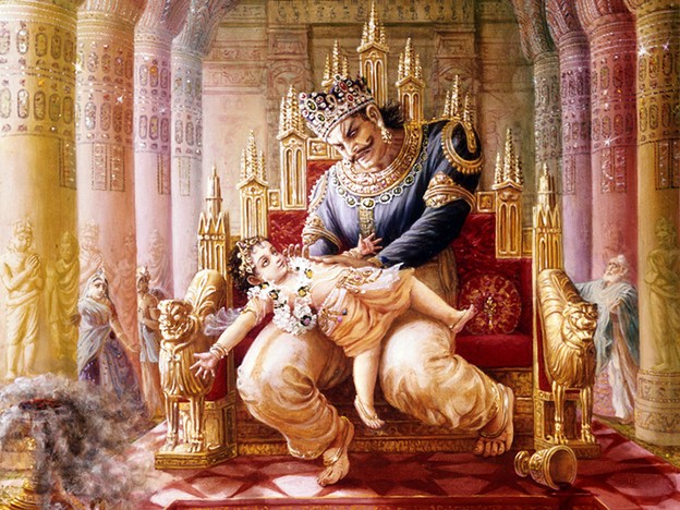 His name was Hiranya Kasipu. Hiranya means ‘golden’ and Kasipu means ‘soft bed.’ He was a connoisseur of women and wealth. After the death of his brother, he became the sworn enemy of Vishnu, utterly determined to destroy Vishnu and all those who followed religious principles or brahminical culture.