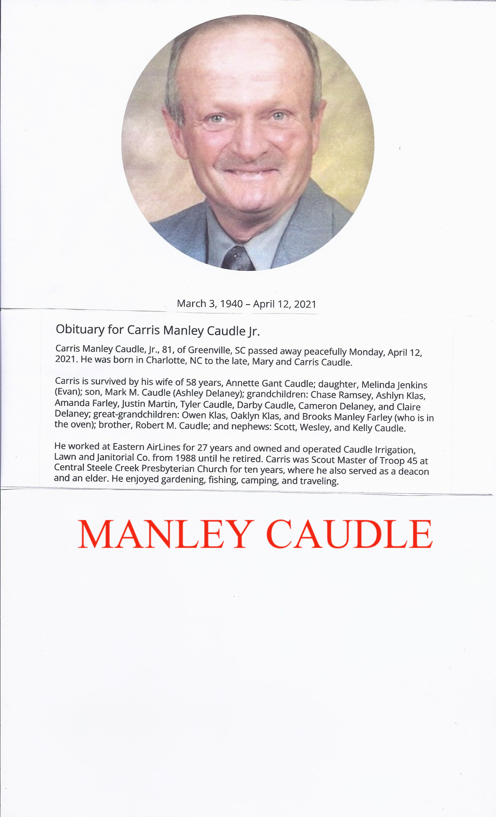 The family will receive friends from 12:30 to 2 p.m. Thursday, January 28, 2010 at McEwen Funeral Service, Charlotte Chapel, 5716 Monroe Road, Charlotte, NC 28212 with a graveside service to follow at 2:00 p.m. at Sharon Memorial Park conducted by the Reverend David Morton.