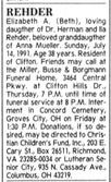 Elizabeth Ann "Beth" Rehder 1952-1991