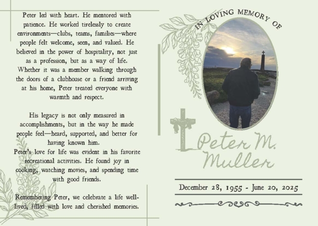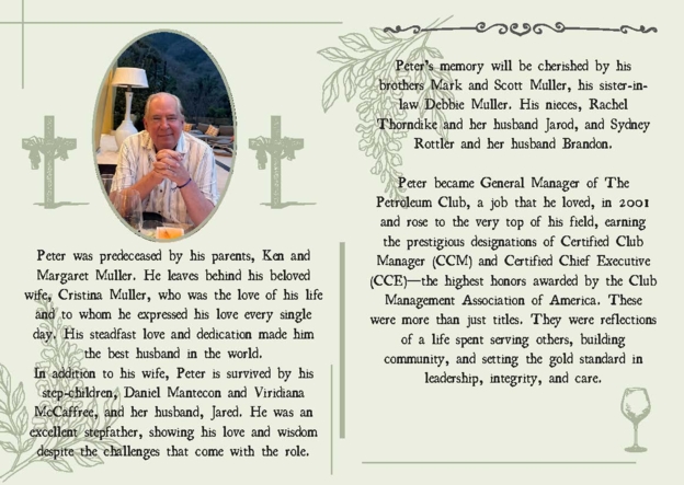 I am so glad I had the opportunity to reconnect with Peter at the 50th reunion. Peter was always kind and gracious. He spent much time taking about his wife and I sent her a letter to let her know. May he rest in peace and may God wrap his arms around his family and make His presence undeniable.