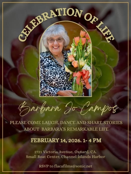 The campos family invites you to laugh, dance and share stories about Barbara's remarkable life at her celebration of life on Saturday, February 14, 2026, 1 - 4 PM.