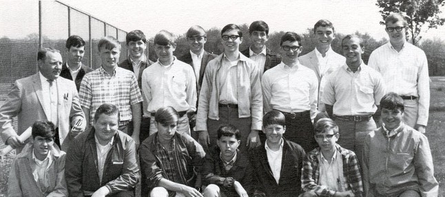 Student Bulletin "IT" members in Brian's junior year. Albert Keinath, Joan Hutchinson, Susan Regnier, Kenneth Behan, Mr. James Dowd (advisor), J. Glenn Reardon, Mr. Richard Freburg (advisor), Brian Falk.