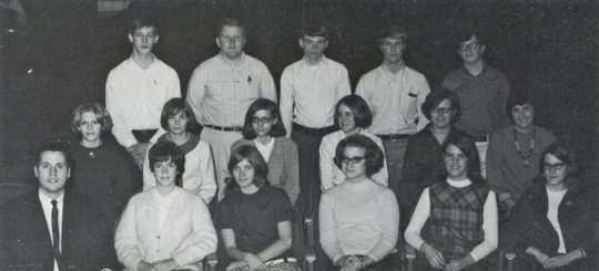 During Brian's senior year, the latest edition of the "Red and Grey" falls into the eager hands of staff members Al Keineth, Joan Hutchinson, Marlene Cabana, John Hire, Brian Falk, and advisor Mr. James Dowd.