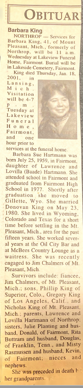 Some memories of my time with Barb: Hanging out in the parking lot during lunch break; Driving to Gumsrud Park to chatter and hang out; Going to the DQ for sundaes and FF's; Senior's Day - we were probably the last two seniors on campus when we sauntered out of the building during lunch and took off in her jazzy car. We both got only a half-day penalty while everyone else got like a whole day, eh? Watching Barb learn to drive her jazzy car with the stick shift was a hoot! I swear we must've busted the eardrums of every person within a two-county radius of the country road we were driving on when she made a smooooooooth transition for the first time! What a hoot! I have many many more memories but these'll do for now.