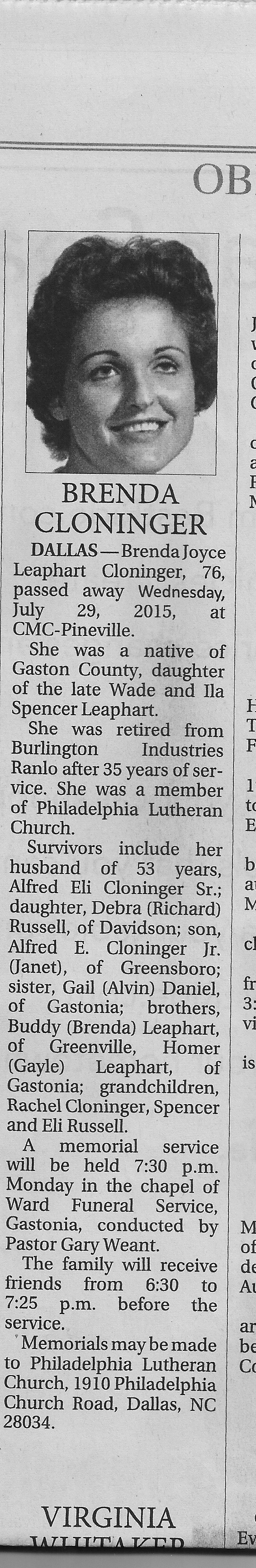 Brenda Joyce Leaphart (Cloninger)