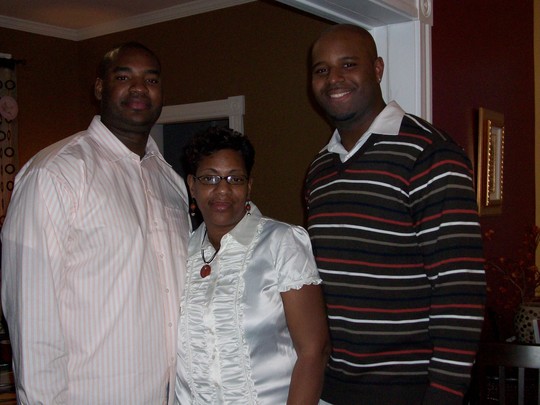 Our older son Dyshawn and my other son Brandon at Dyshawn's baby shower where he celebrated the birth of his first child a daughter Kennedy .