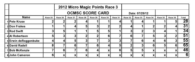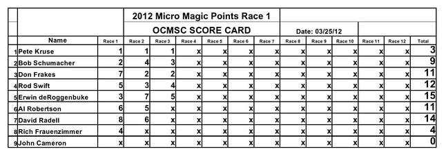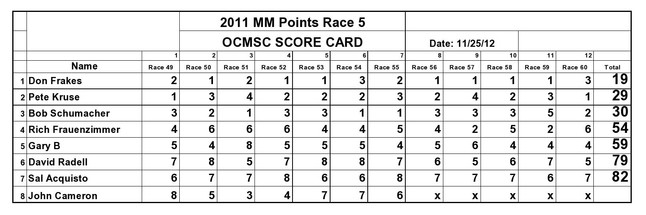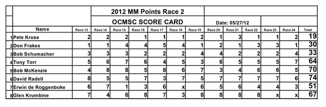 The points races for 2012 have been completed. The rankings were based on the best 26 races; half of the 51 races run this year. Congratulations to the winners.
