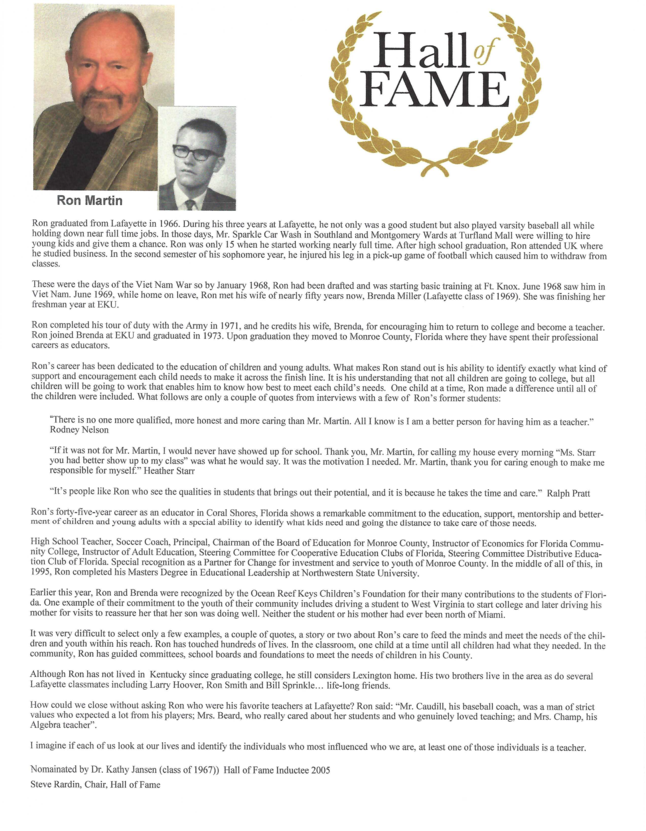 Nominations for Hall of Fame