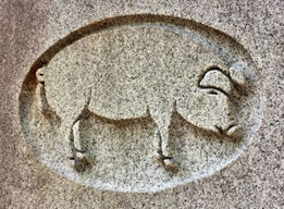 A closeup of the Pig Monument carving |