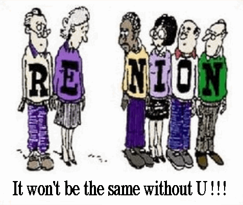 "The 50th reunion is NOT going to be about waistlines, hairlines, or credit lines; it's about LIFE-LINES - we're all just glad to be alive - come as you are!"