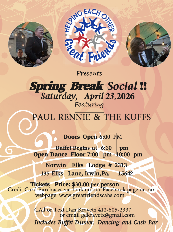 <new> Great Friends is having a Spring Break Social on April 23, 2026. Following are the details: