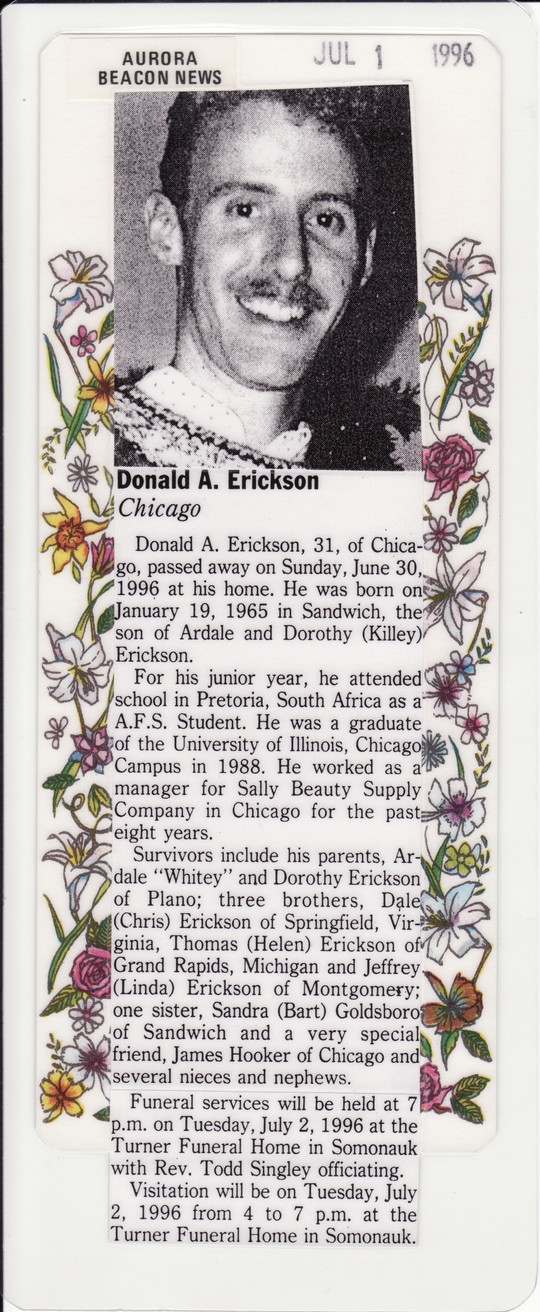 I always remember Donald as being so smart. In grade school he always got the word searches done first. He would always beat me. Also, in fifth grade, Traci Meier got to be his date for the sock hop. We were so jealous! Most of all, I remember that Don was so funny and nice. You can remember how nice he was when you look at his pictures.Mike Gould