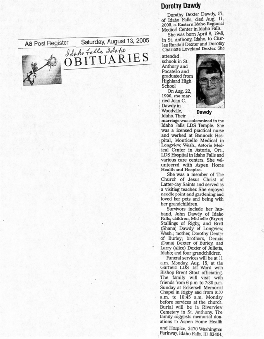 Phone call I received said she died from heart problems a few years back in Idaho Falls. Still trying to find more information.