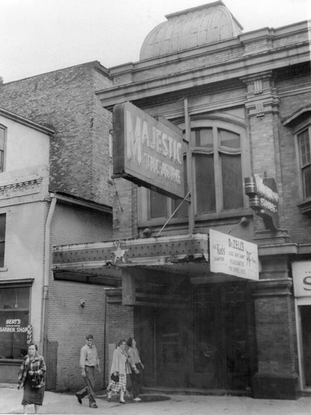 The Majestic Theatre in 1958, 500 block of Grand River Avenue, across from the south entrance to Sperry's. Bert's barber shop to the East.