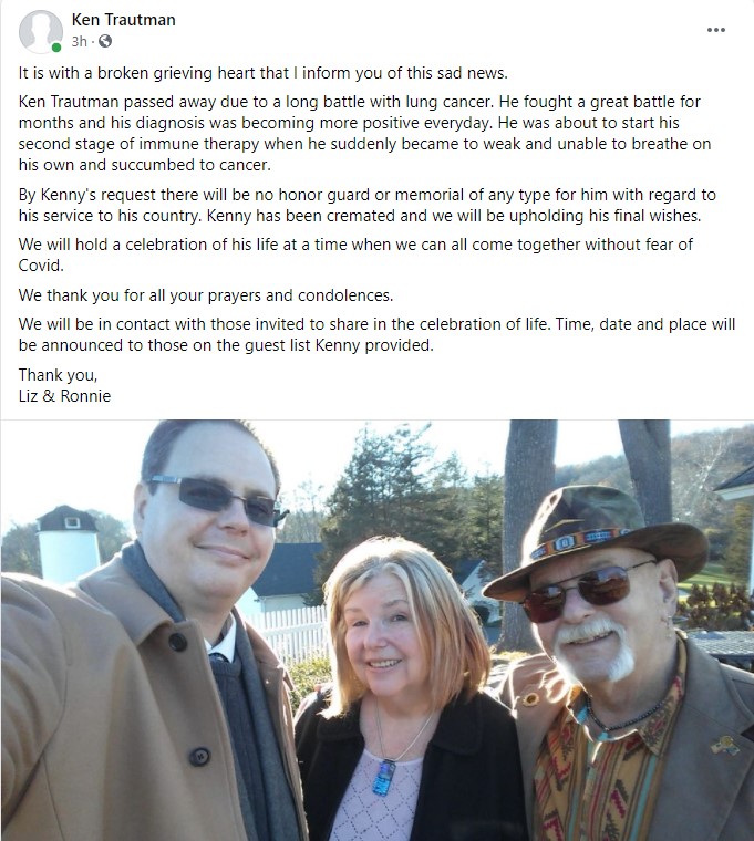 Kenny will be missed by all that knew him. Whenever i needed him he was there.. Ken brought me into the Chapter after Volunteering at the Moving Wall in Flushing Meadows. In '92.. Always a Pleasure working with Him.