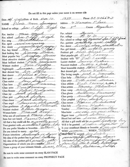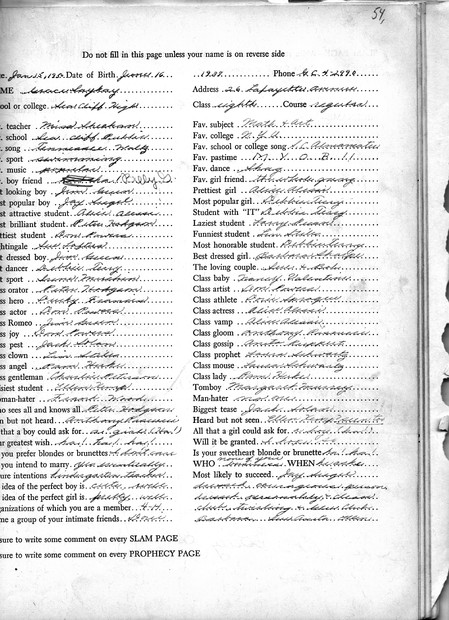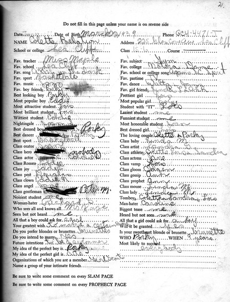 Contents of Character New Pages Posted Saturday, June 25, 2011 01:16 PM This newest batch starts with Dorie Sprague ('55)who shared this book with her sister Betty ('57). Thanks to Dorie, we have a number of people from classes before '57. Also here, Grace Sakay ('55) and Colette Relation ('57).