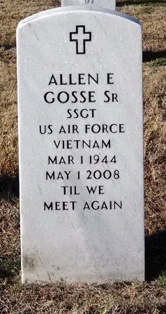 Private graveside services for Allen Ernest Gosse Sr., 64, of Lampasas, Texas were held May 5, 2008, at the Central Texas State Veterans Cemetery in Killeen.
