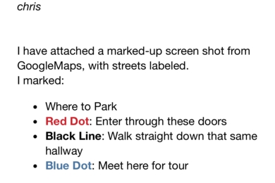 Parking will be on the south end of the building, and a map is attached for reference which includes parking, entrance & meeting location.